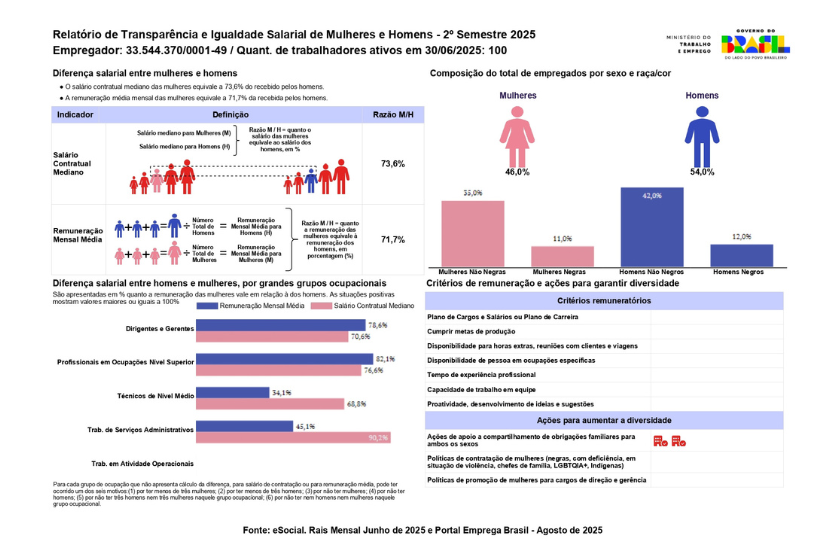 Confira o Relatório de Transparência e Igualdade Salarial de Mulheres e Homens, referente ao 2º semestre de 2025 da Associação Nóbrega de Educação e Assistência Social (Aneas):
