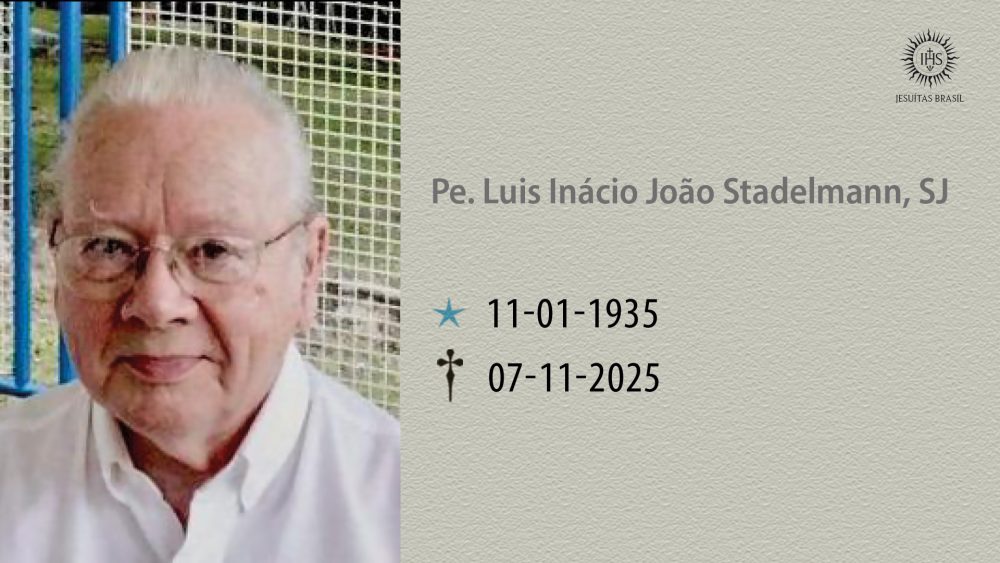 A Província dos Jesuítas do Brasil comunica, com pesar, o falecimento do Pe. Luís Inácio João Stadelmann, SJ, aos 90 anos de idade, ocorrido nesta sexta-feira (07), na Comunidade de Saúde e Bem-estar São José, em São Leopoldo (RS). Natural da Suíça, o Pe. Luís Stadelmann chegou ao Brasil ainda jovem, acompanhando a família, e […]