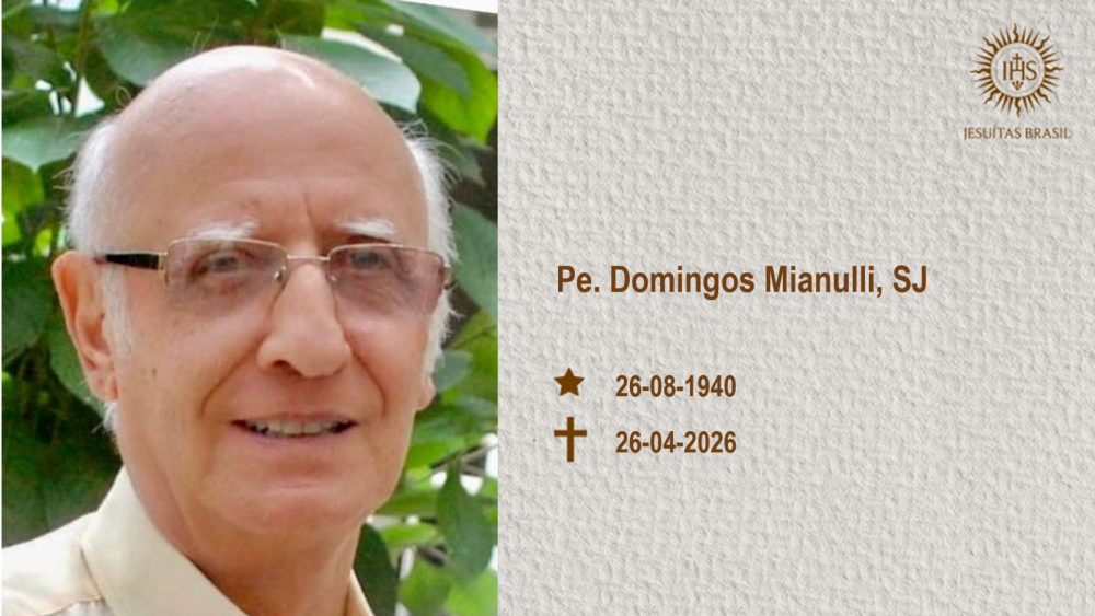 A Província dos Jesuítas do Brasil comunica, com pesar, o falecimento do Pe. Domingos Mianulli, SJ, ocorrido neste domingo, 26 de abril, em Fortaleza (CE). O jesuíta estava com 85 anos de idade e 67 anos de vida religiosa. Aos 19 anos de idade, depois de concluir seus estudos secundários no Liceu Umberto I, o […]