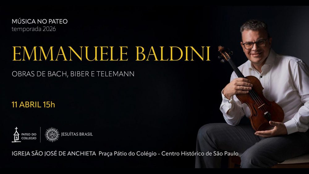 A temporada 2026 da série Música no Pateo segue apresentando grandes nomes da música de concerto no local de nascimento da cidade de São Paulo (SP). No evento deste mês, o Pateo do Collegio trouxe o maestro e violinista italiano Emmanuele Baldini para um recital dedicado ao repertório barroco para violino solo.