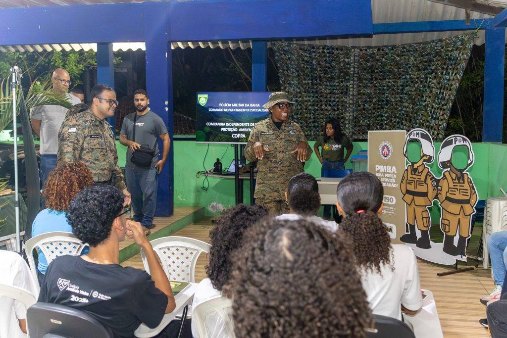 Aprender sobre a importância da proteção ambiental, impactos no clima e na preservação da vida, assim como aspectos legais a serem cumpridos, diretamente com os policiais que atuam na fiscalização nessa área. Esse foi o objetivo da aula de campo realizada com estudantes da 2ª série do Ensino Médio Noturno do Colégio Antônio Vieira, em Salvador (B)A. Eles visitaram a sede da Companhia de Polícia de Proteção Ambiental (Coppa), no bairro de Pituaçu, onde foram recebidos pela comandante da unidade, a tenente-coronel Érica Patrícia, e pela equipe de Educação Ambiental.