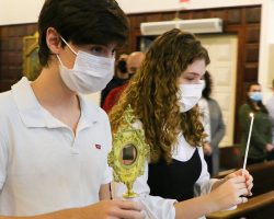 No início da celebração, a relíquia de Santo Inácio foi entronizada pelos alunos Caio Cesar Thiesen Cunha e Yolanda Vanderlinde Camargo, que, representando todos os alunos, realizaram o gesto simbólico de abertura do Ano Inaciano no Colégio, acendendo uma lamparina que recorda o ardor missionário do fundador da Companhia de Jesus.