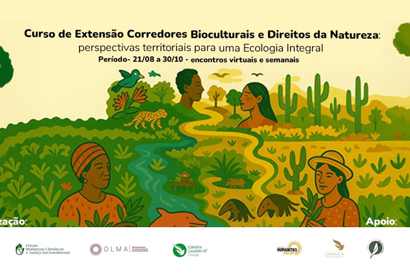 O Observatório de Justiça Socioambiental Luciano Mendes de Almeida (Olma) em parceria com o Instituto Humanitas Unicap, a Cátedra Laudato Si’, o Fórum Socioambiental de Mudanças Climáticas e outras instituições, está promovendo o curso de extensão Corredores Bioculturais e Direitos da Natureza: perspectivas territoriais para uma Ecologia Integral na COP 30, que oferecerá ferramentas teóricas e práticas voltadas à ação diante das mudanças climáticas.