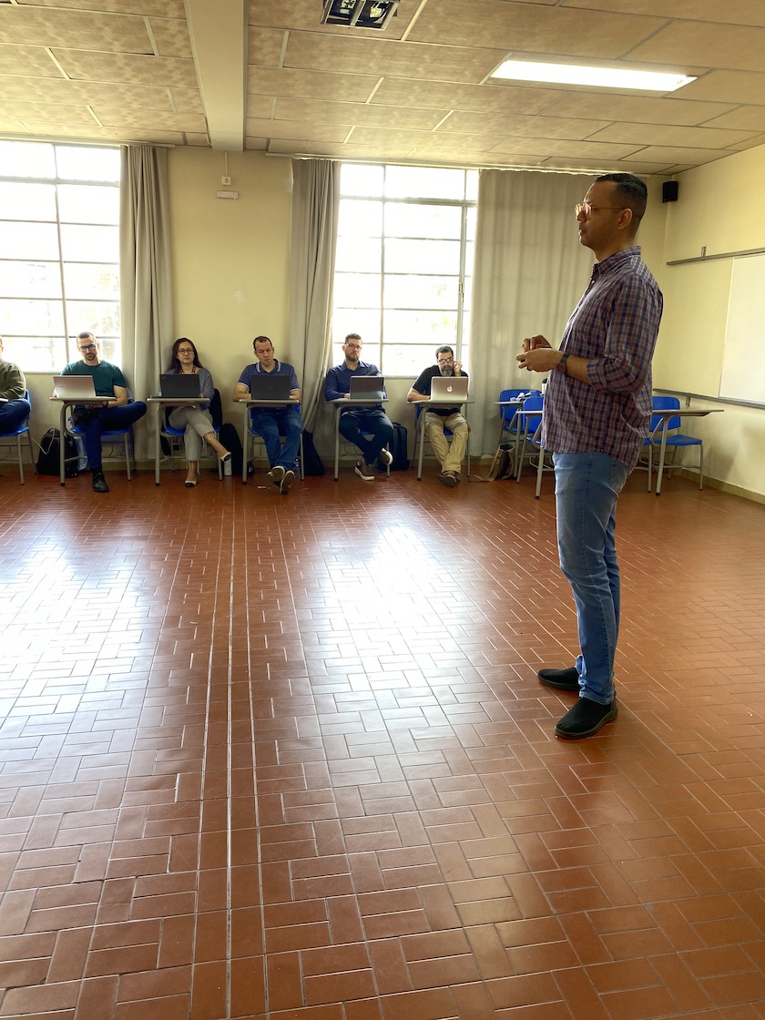O momento final da manhã foi dedicado ao 5º eixo do planejamento estratégico, apresentado conjuntamente por padre Jerfferson e Tatiane Sant’Ana. Esse eixo, único que não parte diretamente de uma preferência apostólica, trata da Gestão da RJSA e foi destacado como essencial para a administração eficiente da Rede.