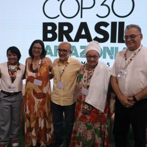 Belém (PA) – O papel das comunidades de fé e dos povos tradicionais na construção de soluções frente à crise climática foi o foco do painel Justiça Climática, Implementação de NDCs e a Contribuição dos Grupos de Fé, realizado nesta terça-feira (11), na Sala Cumaru, no Pavilhão do Brasil (Zona Azul) da COP30. O evento, apoiado pela Companhia de Jesus, reuniu representantes de diferentes tradições religiosas, redes sociais e organizações de base que atuam na defesa da Casa Comum e na promoção da justiça climática.