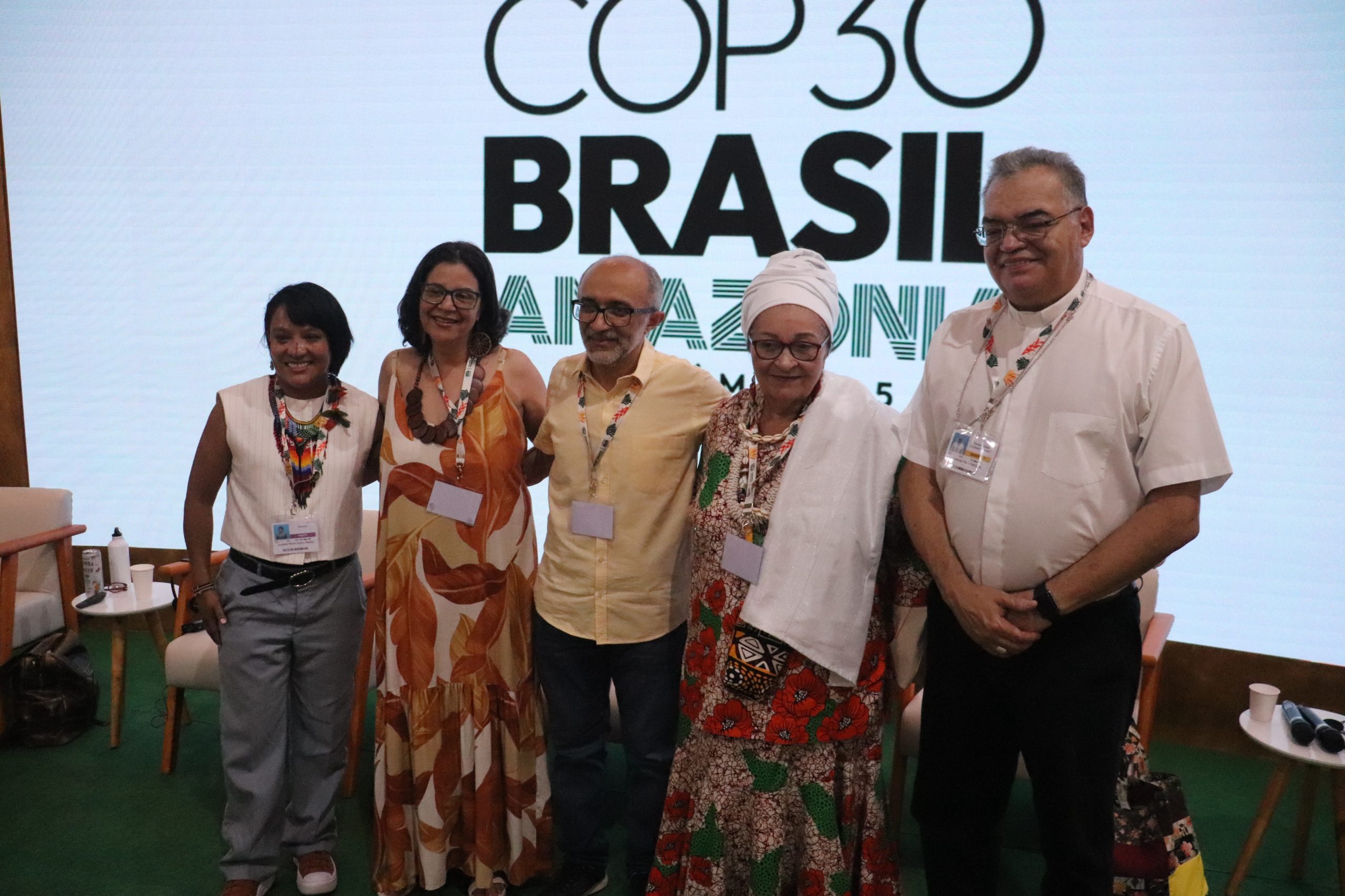 Belém (PA) – O papel das comunidades de fé e dos povos tradicionais na construção de soluções frente à crise climática foi o foco do painel Justiça Climática, Implementação de NDCs e a Contribuição dos Grupos de Fé, realizado nesta terça-feira (11), na Sala Cumaru, no Pavilhão do Brasil (Zona Azul) da COP30. O evento, apoiado pela Companhia de Jesus, reuniu representantes de diferentes tradições religiosas, redes sociais e organizações de base que atuam na defesa da Casa Comum e na promoção da justiça climática.