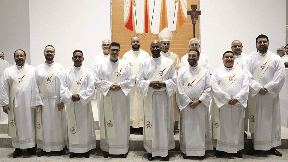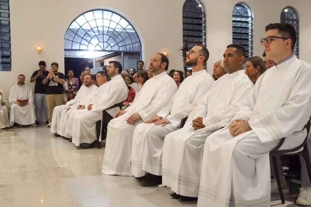 Andrea Marelli SJ (EUM), Antonito Martins SJ (ETR), José Manuel Gómez SJ (VEN), Klebson Barbosa SJ (BRA), Rafael Tole SJ (COL), Romel Pastrana SJ (COL), Tomás Browne SJ (CHL) e Wesley de Oliveira SJ (BRA), acompanhados por suas famílias, amigos e pelo corpo apostólico da Companhia de Jesus, receberam a ordenação diaconal em um momento simples e profundo de oração, com a imposição das mãos do bispo auxiliar da Arquidiocese de Belo Horizonte, monsenhor Joel Maria dos Santos.