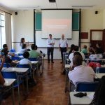 Logo depois, Pe. Arturo Sosa foi recebido, com muito entusiasmo, por um grupo de 40 alunos – em sua maioria, agentes de pastoral da Comunicação –, que estão participando de um Curso de Pós-graduação em Evangelização e Pastoral: desafios para a Igreja na era digital. Ele dirigiu palavras de incentivo aos estudantes, pedindo-lhes que “não desistam nunca de sua missão de evangelizar pela comunicação”, porque devem sempre acreditar nas palavras de Jesus: “Estarei convosco todos os dias”. A pedido da professora que ministrava a aula, Aline Amaro, ele deu uma mensagem ao vivo no facebook, como uma prática do tema de sua disciplina: evangelização pelas redes sociais. Ao fim dessa pequena e muito bem-vinda visita à aula, o jesuíta foi aplaudido de pé pelos presentes.