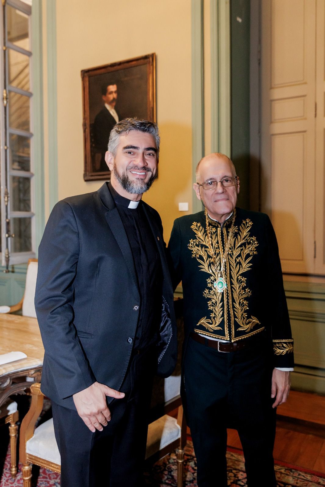 A cerimônia de posse de Paulo Henriques Britto na ABL contou com a presença do reitor da PUC-Rio, Pe. Anderson Antonio Pedroso, SJ, e todos os professores do Departamento de Letras da Universidade, onde o imortal leciona e participa de conselhos departamentais, comissões etc.