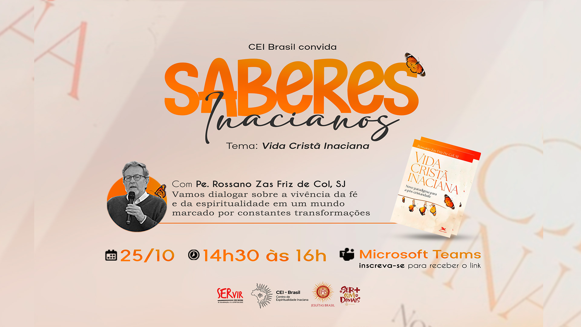 A Rede Servir promove a primeira edição de Saberes Inacianos, com o autor do livro Vida Cristã Inaciana, Pe. Rossano Zas Friz de Col, SJ, que refletirá sobre como viver a fé e a espiritualidade inaciana em tempos de transformação social e cultural. A obra dele propõe uma releitura da tradição inaciana à luz dos desafios atuais, convidando-nos a perceber como a vida cristã pode ser vivida de forma autêntica e enraizada no Evangelho.