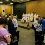 O Sarau Inaciano, no dia 1º de agosto, encantou os presentes com uma leitura dramática da vida de Santo Inácio, interpretada pelo Pe. Paulo Veríssimo Filho, SJ, Ir. Ubiratan de Oliveira Costa, SJ, e diácono Lucas Maurício dos Santos, SJ. A comunidade respondeu com poesias e cantos que celebram os 60 anos de história do CCB.