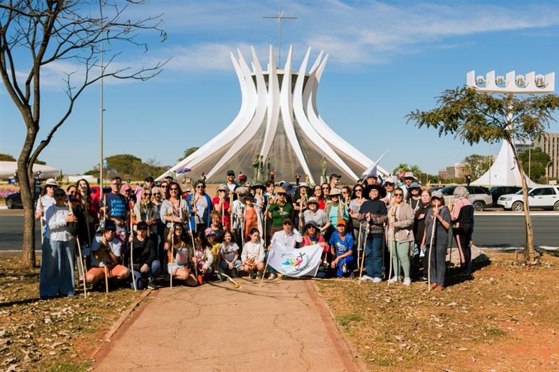 A Caminhada Inaciana, no domingo (03), reuniu a comunidade que, com cajado nas mãos, peregrinou até a Catedral de Brasília (DF). Guiada pelos passos de Santo Inácio, os participantes encerraram a jornada com uma missa celebrada pelo recém-ordenado Pe. Renilson Tomaz, SJ. Durante a Eucaristia, foi vivenciado um momento especial: a inauguração e bênção da nova exposição da Via Lucis, doada ao Centro Cultural de Brasília. As estações luminosas da Ressurreição, agora permanentemente expostas, foram abençoadas como sinal da esperança e da vida que orientam a missão do CCB.