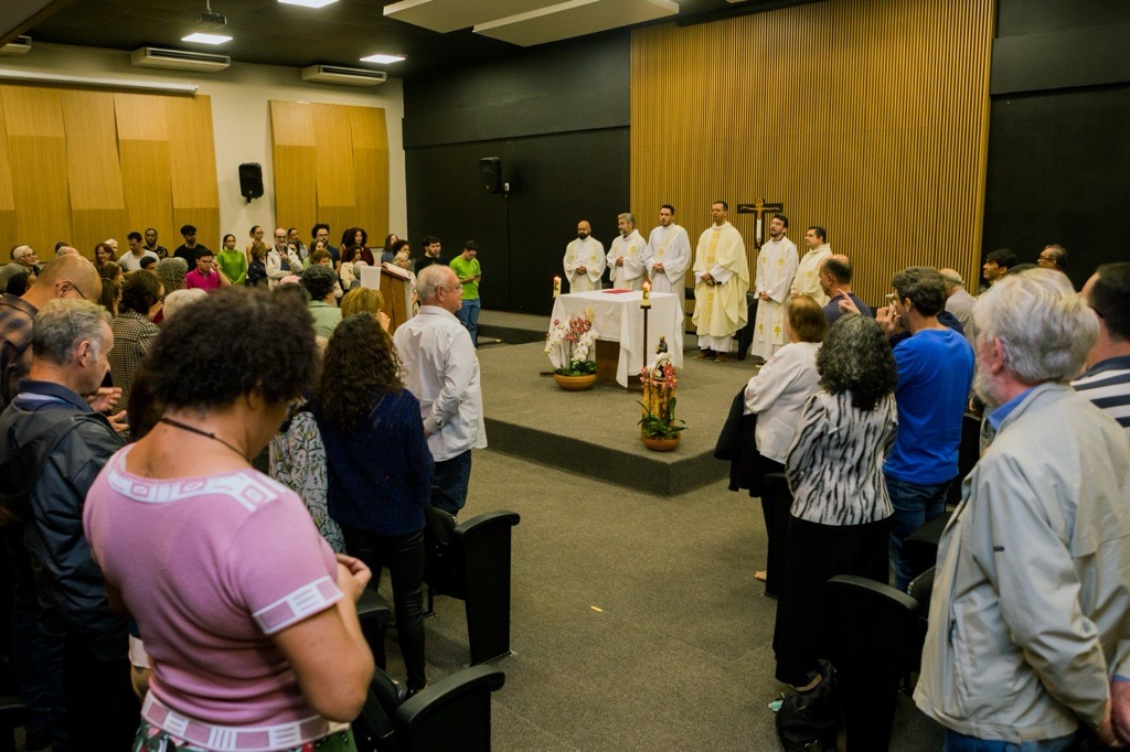 O Sarau Inaciano, no dia 1º de agosto, encantou os presentes com uma leitura dramática da vida de Santo Inácio, interpretada pelo Pe. Paulo Veríssimo Filho, SJ, Ir. Ubiratan de Oliveira Costa, SJ, e diácono Lucas Maurício dos Santos, SJ. A comunidade respondeu com poesias e cantos que celebram os 60 anos de história do CCB.