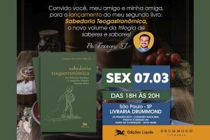 No dia 07 de março, Pe. Francys Silvestrini Adão, SJ, lançará o livro Sabedoria teogastronômica, segundo volume de uma trilogia publicada por Edições Loyola, na livraria Drummond (Av. Paulista, 2073 – Conjunto Nacional), em São Paulo (SP). Baseado nas Escrituras e no pensamento do cardeal José Tolentino Mendonça, o jesuíta explora a relação entre comida, fé e convivência, além de evidenciar o papel simbólico das refeições como espaços de acolhimento e transformação. “Eu tento refletir sobre a nossa vida e relações a partir da alimentação”, enfatiza Pe. Francys.