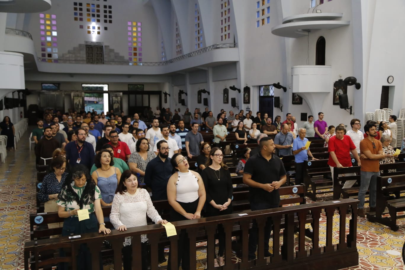 Na quarta-feira (23), a comunidade da Universidade Católica de Pernambuco (Unicap) reuniu-se no Santuário de Nossa Senhora de Fátima, no Complexo Nóbrega, para celebrar uma missa em homenagem ao Papa Francisco, falecido na última segunda-feira (21). A cerimônia contou com a presença de todos os jesuítas da instituição, além de professores, funcionários, alunos e fiéis católicos comovidos com a partida do pontífice. A missa foi presidida pelo reitor da Unicap, Pe. Pedro Rubens, SJ, que, em sua homilia, traçou um paralelo entre o Evangelho do dia — o episódio dos discípulos no caminho de Emaús — e a trajetória de Jorge Mario Bergoglio. “O evangelho de hoje, episódio que só é narrado por Lucas, é uma bela página bíblica, plena de movimentos, sentimentos, palavras e gestos. E, de certa forma, tudo isso tem muita relação com o inquieto Jorge Bergoglio.”