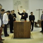 Na Capela, o Pe. Arturo Sosa abençoou réplicas da cruz peitoral de madeira de Dom Helder Câmara, um dos ícones da celebração dos 75 anos do projeto universitário que deu origem à UNICAP. Cada um dos jesuítas recebeu a cruz. Na ocasião, Pe. Pedro Rubens contou o episódio em que o Dom da Paz – como Dom Helder é conhecido até hoje – enfrentou os militares da Ditadura no térreo do bloco “A” da Católica, negociando a liberação de estudantes que seriam detidos. “Dom Helder foi, para a minha geração e para a América Latina, uma luz-guia, um farol. Ele foi profeta dos tempos atuais”, ressaltou Pe. Arturo Sosa.