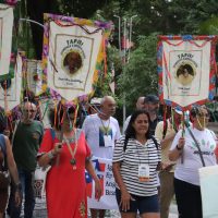 Entre as expressões presentes, destacaram-se a apresentação do Grupo de Atividades Culturais Ayrakyrã, com Carimbó tradicional, e o bloco Vozes pela Terra, formado por lideranças religiosas que conduziram orações, cantos e reflexões sobre a proteção dos povos e do planeta.