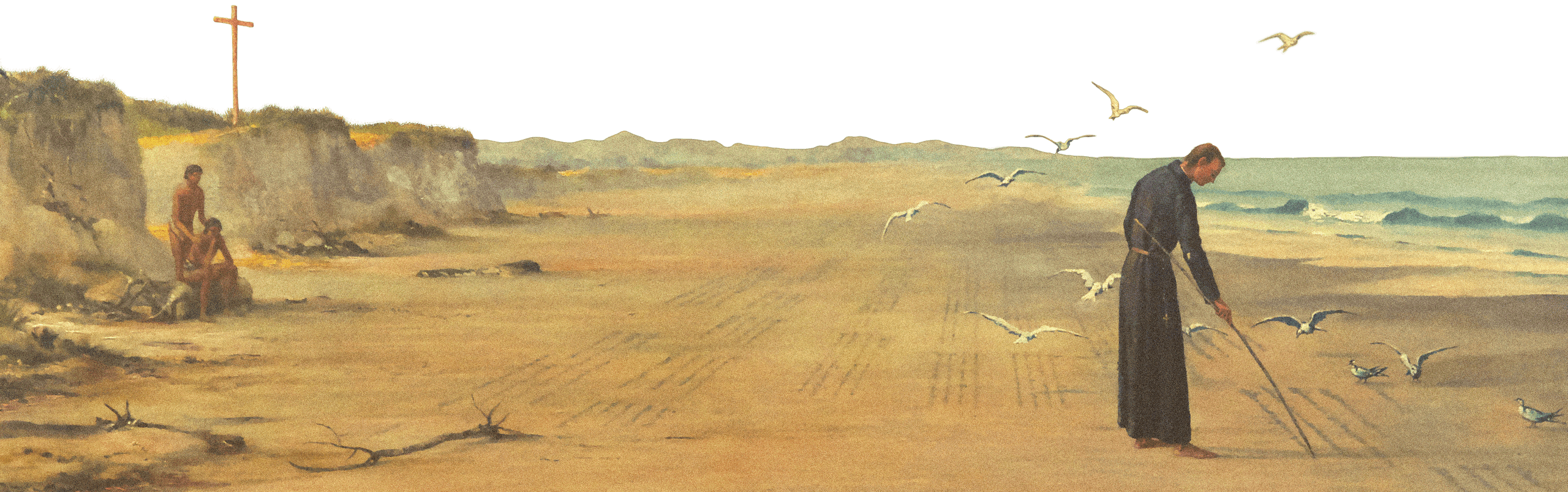 Apesar de ter nascido na Ilha de Tenerife, no arquipélago das Canárias, na Espanha, Pe.e José de Anchieta ficou conhecido como o “apóstolo do Brasil” por sua atuação no país. Chegou em terras brasileiras em julho de 1553, com outros seis jesuítas e, em menos de um ano, dominava o tupi com perfeição. Ao longo dos 43 anos em que viveu no Brasil, participou da fundação de escolas, cidades e igrejas.